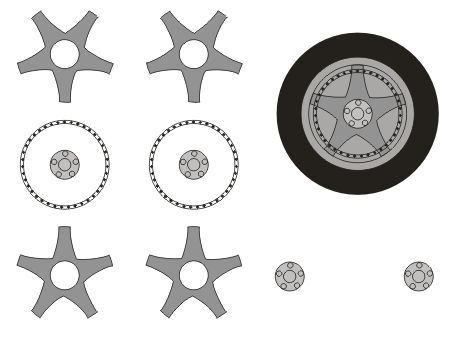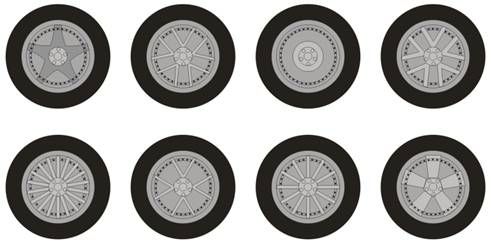 Mas ainda falta a noção de "relevo", que virá na fase "03" das rodas. O importante nessa atual etapa é ver que o desenho central pode ser removido e substituído se necessário...