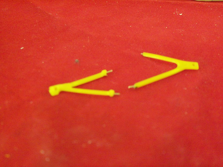 Os mesmos precisam ser encurtados para conseguir o alinhamento correto das rodas. Remova as partes marcadas e faça pequenos furos para encaixar os pinos.