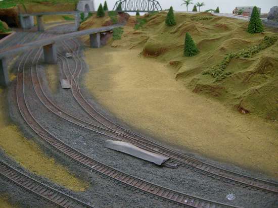 Para fazer pontes e viadutos eu uso madeiras. Balsa facilita o acabamento. Para fazer envelhecimento, utilizo várias cores e ferramentas como o aerógrafo.