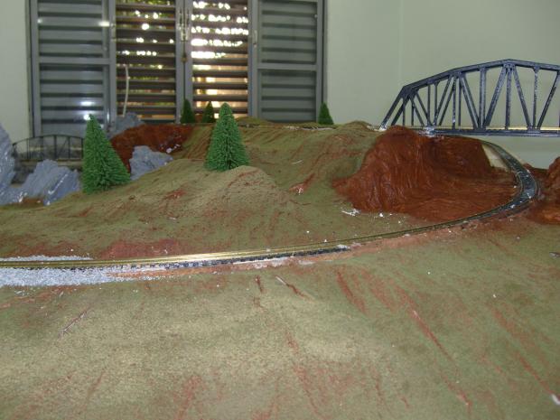 Aqui mostro que usa-se vários tipos de materiais como isopor, papel higiênico, gesso, atadura gessada, fita crepe, látex, super-bonder, cola Tenaz, espumas trituradas, galhinhos para fazer árvores, madeira-balsa, trilhos Atlas ou Frateschi de níquel, estruturas importadas de acordo com o cliente, tintas automotivas, cola quente, serragem para árvores, bucha vegetal, giz-pastel seco, folhas variadas.