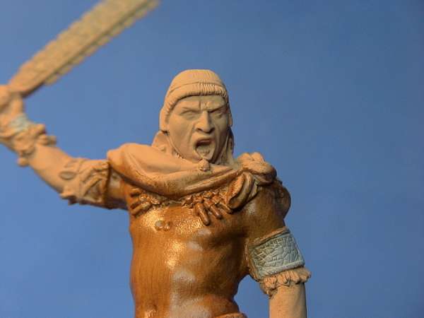 Como fundo da pele uso Tamiya clareada com branco e pouquíssimo vermelho. Depois o fundo da pele com óleo, usando raw umber, burt sienna, amarelo ocre, todos Winsor & Newton.