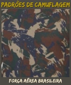 CAMUFLADO DA FORÇA AÉREA BRASILEIRA: Padrão de camuflagem da Força Aérea Brasileira, similar ao padrão do exército, só que alguns tons de azul mesclados. Também muito eficiente em nossas condições de vegetação.