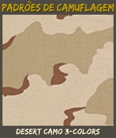 DESERT 03 COLOR: Padrão de camuflagem para terrenos desérticos das Forças Armadas N.As., vigente até muito recentemente, sendo progressivamente substituído pelos Padrões ACU e MARPAT Desert.
