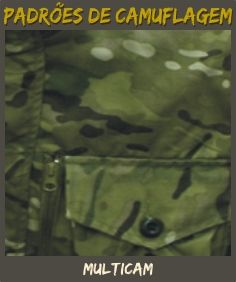 MULTICAM: Padrão de camuflagem moderno multi-ambientes, desenvolvido por uma industria civil (Crye Precision) em conjunção com o Exército N.Americano. à princípio presta-se para o uso militar do projeto Future Force Warrior, mas é também vendido à civis. Seu padrão é um dos mais eficientes em variados tipos de terreno.