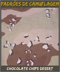 CHOCOLAT CHIPS DESERT: Primeiro padrão oficial de camuflagem para terrenos desérticos das Forças Armadas N.A.... mas extremamente ineficiente e precocemente substituído pelo Padrão Desert 03 Colors.