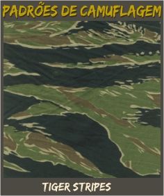 TIGER STRIPES: Primeiramente utilizado pelos Franceses em sua ocupação no Vietnam, foi posteriormente adotado pelas Forças Especiais N.Americanas (Green Berets) naquele mesmo país... mas foi abandonado antes mesmo do término daquele conflito em 1975.