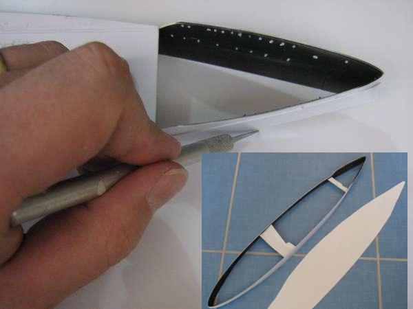 A etapa final consiste em pegar um plasticard e fazer o fundo do barco, o que dará uma rigidez a estrutura do casco. Coloque o casco sobre o plasticard e marque com um estilene a linha do casco. Corte o estireno, deixando sempre um pouco de sobra, por garantia, e cole ambas as peças pela parte interna do casco. Após secar, corte os excessos.